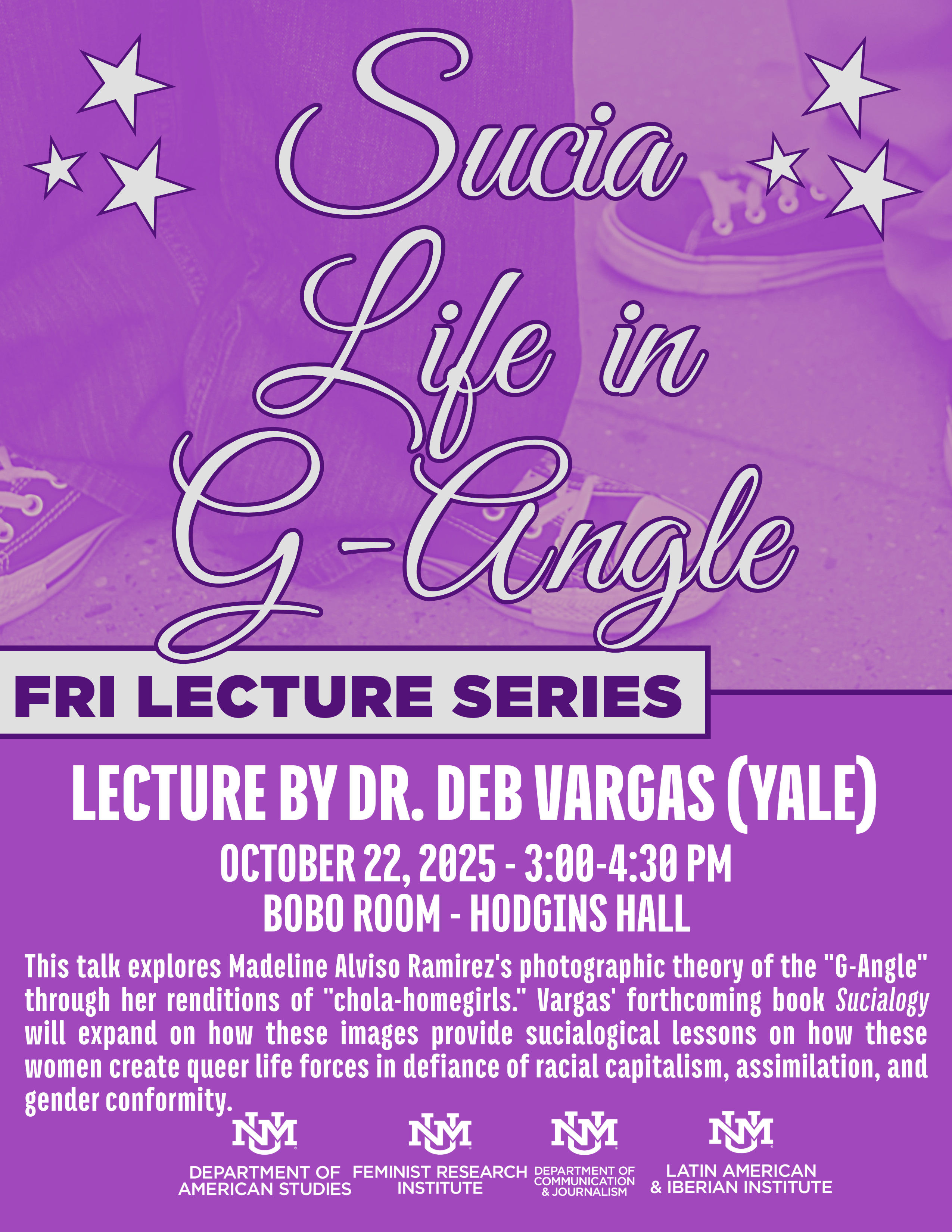 This talk explores Madeline Alviso Ramirez's photographic theory of the "G-Angel" though her renditions of "Chola-homegirls." Vargas' forthcoming book Sucialogy will expand on how these images provide sucialogical lessons on how these women create queer life forces in defiance of radical capitalism, assimilation, and gender conformity.